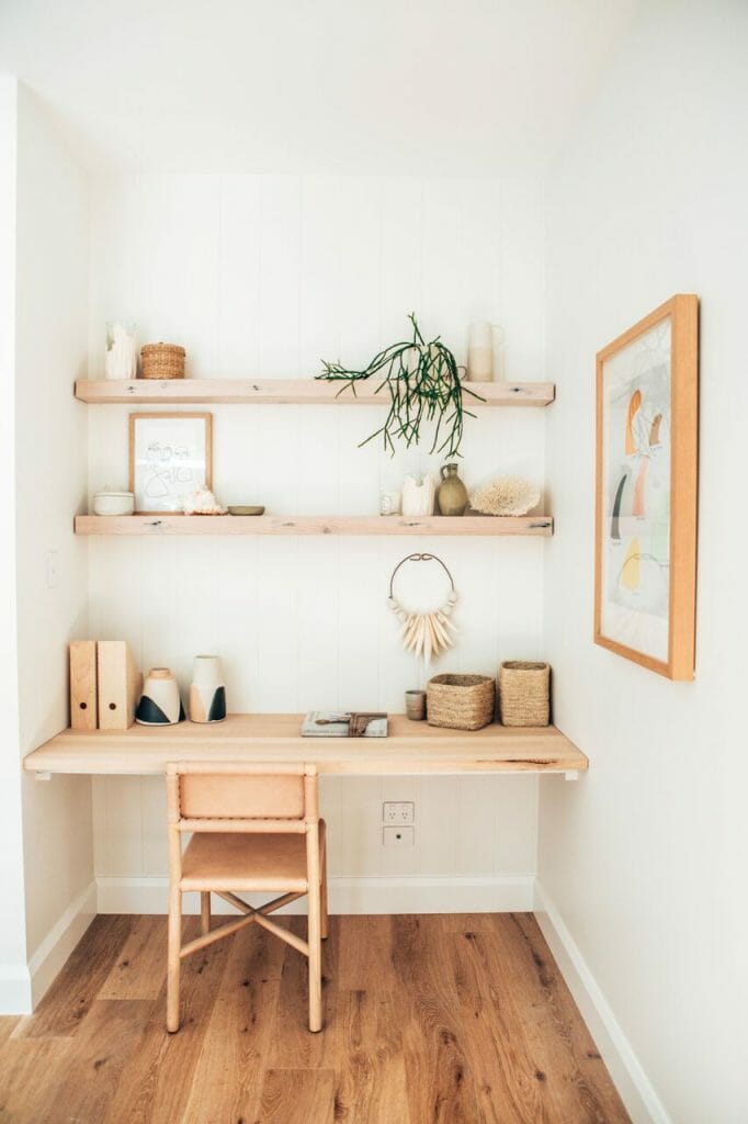 When you’re working in a space, especially a small one for hours on end, the last thing you want to see is a blank wall. Don’t forget to personalize your space. For you this might be artwork that speaks to you, plenty of green plants or baskets to organize your work that “spark joy” as Marie Kondo would say!